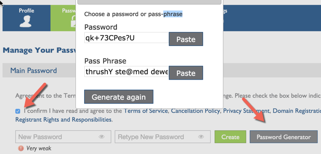 You can choose a password and you can use a password generator option to create a very complex password (which we highly recommend). Copy and paste the password in a safe place, and click on “Paste”. Make sure you don’t forget your password